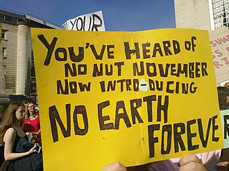 <!--'''No Nut November'''-->[[ | <!--'''No Nut November'''-->[[Datoteka:Leeds 20 September 2019 climate strike No earth forever.jpg|thumb|Natpis klimatskih protestanata koji aludira na No Nut November]] | ||
