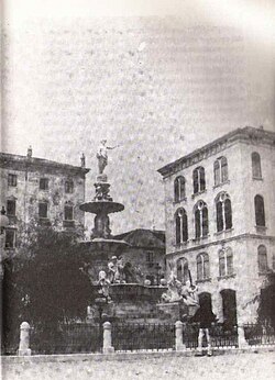 Godine 1880. godine naručio je dr. Antonio Bajamonti, tada posljednju godinu splitski načelnik, u klesarskoj radionici F. Dall’Ara e Comp u Milanu veliku ukrasnu javnu fontanu, prema modelu padovanskoga kipara Luigija Ceccona, autora većeg broja skulptura i nekoliko javnih spomenika u sjevernoj Italiji, među kojima je najpoznatiji bio spomenik pjesniku Francescu Petrarci na Petrarkinu trgu u Padovi, otkriven 1874. godine. Ceccon je bio dobar talijanski kipar, u stoljeću koje je bilo doba istaknutog slikarstva, ali u kiparstvu nije dalo genijalna ostvarenja. Mnogobrojne sačuvane fotografije, a posebno nekoliko glava likova bivše fontane, sačuvanih u Muzeju grada Splita, svjedoče o kiparski istaknutim alegorijskim likovima fontane, zrelim realističkim ostvarenjima s vidljivim utjecajem antičke skulpture. Splitska je fontana bila jedna od najzapaženijih u tadašnjem višenacionalnom Austro-Ugarskom Carstvu.