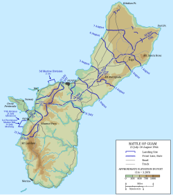 [[ | [[Datoteka:Map of the Battle of Guam, 1944.svg|230px|thumb|Prikaz američkog napredovanja tijekom bitke za Guam]] | ||