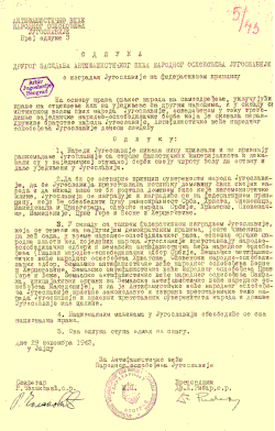 *[https://web.archive.org/web/20070929084154/http://www.crohis.com/izvori/avnoj2.pdf Odluke drugog zasjedanja AVNOJ-a (puni tekst)] | *[https://web.archive.org/web/20070929084154/http://www.crohis.com/izvori/avnoj2.pdf Odluke drugog zasjedanja AVNOJ-a (puni tekst)] | ||