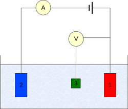 [[datoteka:Three electrode setup.png|mini|desno|250px| Mjerenje elektrodnog potencijala s tri elektrode.]]