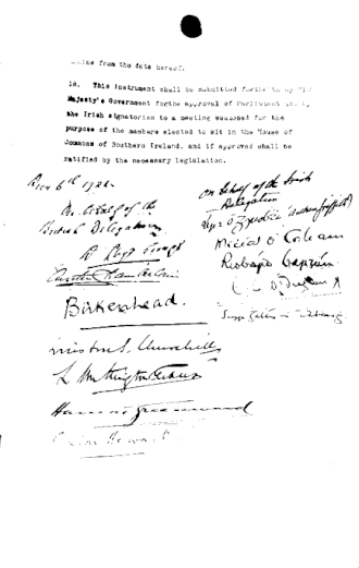 Sporazumi o Anglo-irskom primirju započeli su krajem 1921. u Londonu. Irsku delegaciju predvodili su Arthur Griffith i Michael Collins.