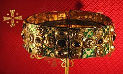 Iz langobardske povijesti preživljava i najstariji simbol monarhističke vlasti u cijeloj Europi: Langobardska željezna kruna. Ta kruna predstavlja ne samo kraljevski autoritet, već se smatra i vjerskom relikvijom, jer je, kako kaže legenda, željezo u njoj iskovano iz čavala s Kristova križa. Iako je Langobardi nisu načinili, prvi su je koristili za krunidbu svojih kraljeva. Kruna je preživjela dugo nakon propasti langobardske države; važni europski vladari su se njome krunili sve do ujedinjenja Italije.