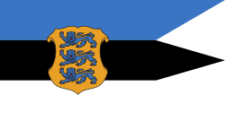 Ratna pomorska zastava. Omjer 7:13Zastava Estonije se sastoji od triju jednako širokih vodoravnih pruga plave, crne, i bijele boje. Ime zastave na estonskom je sinimustvalge (doslovno plavo-crno-bijelo).