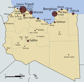 '''Rat u Libiji''' ili '''Revolucija 17. veljače''' ([[arapski]] '''ثورة 17 فبراير'''), naziva se još i '''Pobuna u Libiji''', '''Prosvjedi u Libiji''' i '''Libijski građanski rat''', bio je građanski rat u [[Libija|Libiji]] koji je počeo 15. veljače 2011. i završio 20. listopada 2011. Počeo je s masovnim prosvjedima koji su bili dio [[Prosvjedi u arapskom svijetu 2010.-2011.|prosvjeda u arapskom svijetu 2010.-2011.]] kojima je cilj promjena [[autokracija|autokratskih]] režima i uvođenje [[demokracija|demokracije]] i [[ljudska prava|ljudskih prava]].<ref name="NYT">{{ | '''Rat u Libiji''' ili '''Revolucija 17. veljače''' ([[arapski]] '''ثورة 17 فبراير'''), naziva se još i '''Pobuna u Libiji''', '''Prosvjedi u Libiji''' i '''Libijski građanski rat''', bio je građanski rat u [[Libija|Libiji]] koji je počeo 15. veljače 2011. i završio 20. listopada 2011. Počeo je s masovnim prosvjedima koji su bili dio [[Prosvjedi u arapskom svijetu 2010.-2011.|prosvjeda u arapskom svijetu 2010.-2011.]] kojima je cilj promjena [[autokracija|autokratskih]] režima i uvođenje [[demokracija|demokracije]] i [[ljudska prava|ljudskih prava]].<ref name="NYT">{{Citiranje weba|url=http://www.nytimes.com/2011/02/19/world/africa/19libya.html|title=Libya Protests Build, Showing Revolts’ Limits|date=18. veljače 2011.|accessdate=22. veljače 2011.|first=Anthony|last=Shadid|newspaper=[[The New York Times]]|location=[[Cairo]]}}</ref><ref>{{Citiranje weba|url=http://www.washingtonpost.com/wp-dyn/content/article/2011/02/21/AR2011022104291.html|author=Steven Mufson|title=Crisis in Libya rocks world's financial markets, boosts crude-oil prices|publisher=Washington post|date=22. veljače 2011.|accessdate=24. veljače 2011.}}</ref><ref>{{Citiranje weba|url=http://www.abc.net.au/news/stories/2011/02/21/3143994.htm|title=Protests spread to Libyan capital, troops defect|publisher=ABC News|date=21. veljače 2011.|accessdate=24. veljače 2011.}}</ref><ref>{{cite web |url= http://www.guardian.co.uk/world/blog/2011/feb/17/bahrain-crisis-middle-east-protests-live-blog#block-20|title= Bahrain in Crisis and Middle East Protests – Live Blog|author=Siddique, Haroon; Owen, Paul; Gabbat, Adam|date= 17. veljače 2011.|work=The Guardian |location=UK|accessdate=18. ožujka 2011.}}</ref> Prosvjed je primio zamah nakon što su slični prosvjedi svrgnuli [[Hosni Mubarak|Hosnija Mubaraka]] u [[Egipat|Egiptu]] i [[Ben Ali|Bena Alija]] u [[Tunis]]u. | ||