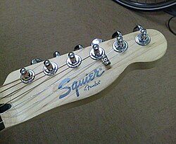 Squier logo na glavi gitare.
