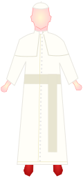 Odjeća pape emeritusa ista je kao i kod pape u službi osim što nema ovratnik i pojas oko struka. Papa emeritus ne nosi ribarski prsten jer po kanonskom pravu nakon što papa umre ili se odrekne službe, on se uništi. Tradicionalne crvene cipele, papa emeritus ih ne smije nositi, jer te cipele samo papa nosi, ali ni sadašnji papa ih ne upotrebljava.