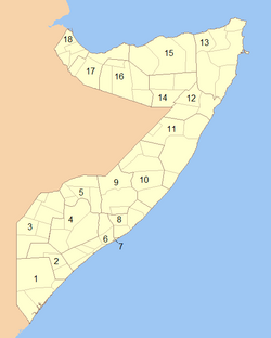[[Datoteka:Somalia Numbered Regions.png|250px|mini|desno|Somalijske regije]] | |||