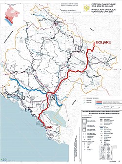 [[Slika:Montenegro motorways.JPG|minijatura|desno|250px|Karta autoceste Bar-Boljare.]] | [[Slika:Montenegro motorways.JPG|minijatura|desno|250px|Karta autoceste Bar-Boljare.]] | ||
