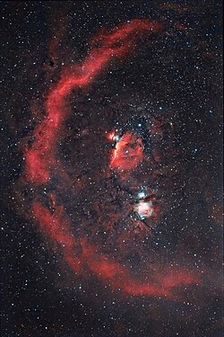 Barnardova petlja viđena protiv glavnih zvijezda i maglice Oriona