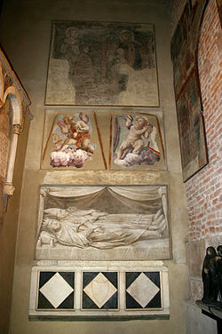 [[Datoteka:9703 - Milano - S. Ambrogio - Tesoro - Tomba di Bernardo & Anselmo I - Foto Giovanni Dall'Orto 25-Apr-2007.jpg|155px|mini|Freska koja prikazuje Bernarda i biskupa Milana. Crkva u [[Milano|Milanu]].]] | |||