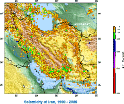 [[Datoteka:Map Iran earthquakes 1990.gif|mini|desno|250px|<center>{{eng oznaka}} [[Potres|Seizmičke aktivnosti]] u [[Iran]]u ([[1990.]] – [[2006.]])]] | |||