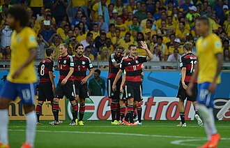 Sukladno tome, Nijemci su prestali s teatralnim proslavama pogodaka; samo bi se podigla ruka, ali nije bilo pretjeranog slavljenja nakon postignutih golova.[51] Izbornik Joachim Löw izjavio je da je njegova momčad imala "jasan i ustrajan plan igre", i kad su uvidjeli da su se Brazilci počeli "lomiti", iskoristili su to; na terenu se jasno vidio kontrast nervoznih brazilskih igrača i "vrlo hladnih" Nijemaca.[54][55][56] Toni Kroos, koji je proglašen igračem utakmice, dodao je da su Nijemci osjetili kako "u nijednoj utakmici na prvenstvu, [Brazilci] nisu igrali najbolje što mogu", dodao je da je momčad započela suret s taktičkim znanjem kako se suprotstaviti Brazilu: "oduzeli smo im sve lopte i postigli golove.”[41] Löw je također izjavio da momčad nije uopće bila euforična tijekom ili nakon utakmice[54] jer su znali da pobjeda od 7:1 ne znači ništa za nadolazeće finale prvenstva, rekavši: "Nismo slavili. Sretni smo, ali imamo još posla za dovršiti".[57]
