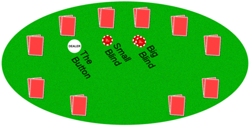 Texas hold 'em igra se uz korištenje small i big blinda, uloga koja su dva igrača pravilima prisiljena uložiti na početku svake ruke. Ponekad se koristi i ante, najčešće vrlo malen ulog kojeg svi igrači prisutni za stolom moraju uložiti. Dealer button (ili jednostavno button) rotira se stolom u smjeru kazaljke na satu; igrač lijevo od buttona postavlja small blind, dok igrač lijevo od small blinda ulaže big blind, koji je uobičajeno dvostruko veći od small blinda. Struktura ante/blindovi kontinuirano raste nakon određenog perioda, a u nekim slučajevima small blind može iznositi više od pola big blinda (npr. $10 small, a $15 big blind) ili manje (npr. $10 small, a $25 big blind).