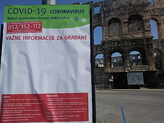 Zbog velikih dnevnih migracija stanovništva između Istre i Italije, Vlada Republike Hrvatske donijela je 11. ožujka 2020. godine odluku o zatvaranju vrtića, osnovnih i srednjih škola te fakulteta na području Istarske županije s ciljem sprječavanja širenja bolesti COVID-19. Ponedjeljka, 16. ožujka 2020., su zatvorene sve obrazovne institucije u Republici Hrvatskoj.[49] Učenici od petih do osmih razreda osnovne škole te svi učenici srednjih škola nastavu imaju online, a za niže razrede osiguran je program na javnoj televiziji (HRT 3).[50]