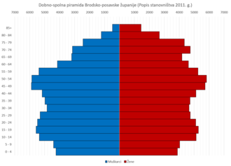 Brodsko-posavska županija je smještena u južnom dijelu slavonske nizine, na prostoru između planine Psunj, Požeškog i Diljskog gorja sa sjevera i rijeke Save s juga i obuhvaća prostor od ukupno 2.043 četvorna kilometra što čini 3,61 % ukupnog teritorija Republike Hrvatske (56.542 četvorna kilometra). Prema popisu stanovništva iz 2001., Brodsko-posavska županija ima 172.993 stanovnika što je za 2.005 stanovnika ili 1,15 % manje u odnosu na 1991. godinu. Brodsko-posavska županija participira sa 3,95 % u ukupnom stanovništvu Republike Hrvatske (4.381.352). Prosječna gustoća naseljenosti je 84,68 stanovnika na 1 četvorni km. U gradovima živi 79.004 stanovnika ili 45,67 % od čega u Slavonskom Brodu kao sjedištu županije 63.268 stanovnika, a u Novoj Gradiški 15.736 stanovnika. U ruralnim sredinama živi 93.989 stanovnika ili 54,33 % svih stanovnika županije.