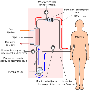 Hemodijaliza (u govoru samo dijaliza) je metoda odstranjivanja otpadnih tvari iz krvi, kao što su kalij i urea, ali i viška vode u slučaju zatajenja bubrega. Hemodijaliza je jedna od tri terapije za zamjenu funkcije bubrega. Druge dvije su transplantacija bubrega i peritonejska dijaliza. Od svih terapija hemodijaliza je najčešći oblik liječenja bolesnika s konačnim zatajenjem bubrega.[1] Rutinska hemodijaliza se najčešće obavlja kod neležećih pacijenata koji dolaze u bolnice ili druge ustanove opremljene za ovaj postupak. Hemodijalizu na klinikama obavljaju specijalizirane medicinske sestre i tehničari. Veoma rijetko hemodijaliza se obavlja i u kući. Većina bolesnika dijalizira se 3 puta tjedno, a postupak prosječno traje 4 sata.[1]