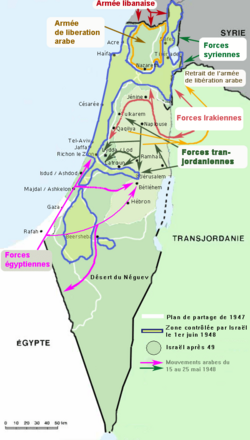 Arapsko-izraelski rat 1948., znan i kao Izraelski rat za neovisnost (hebrejski מלחמת העצמאות or מלחמת הקוממיות, Milhemet HaAtzma'ut; arapski حرب 1948, rat iz 1948.)[4] je bio prvi u nizu ratova između Izraela i arapskih država u sklopu Bliskoistočnog sukoba.[5] Za Izraelce, rat označava uspostavu hebrejske države Izrael, dok za palestinske Arape označava početak pojma „al Nakba“ („Katastrofa“)[6][7] zbog egzodusa stotina tisuća palestinskih izbjeglica iz Izraela te njihove zabrane povratka, ali i želje za osnutkom palestinske države.