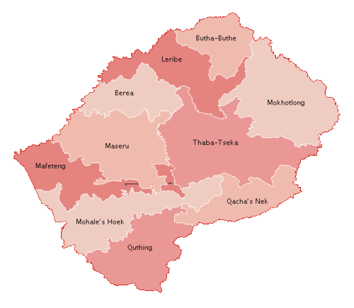 Lesoto je upravno gledano podjeljen na 10 sljedećih distrikta: