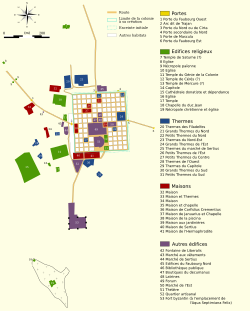 Tu se nalazi i rimsko kazalište s 3,500 sjedećih mjesta, ali i terme, knjižnica i bazilika.