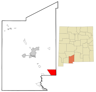 Uključena i neuključena područja u okrugu Dona Ani. Chaparral je istaknut drugom bojom. | |
