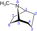 Većina alkaloida u svojoj molekuli sadrži policiklički skelet. Medu jednostavnije pripadnike spadaju kokain i atropin. Tropan, koji se sastoji od šesteroclanog piperidina i peteročlanog pirolidina, čini osnovni biciklički skelet ovih alkaloida. Kokain ima jako djelovanje na centralni živčani sustav, a upotrebljavao se kao lokalni anestetik. Kasnije je zamijenjen prokainom, lidokainom i drugima jer uzrokuje snažnu psihičku ovisnost.