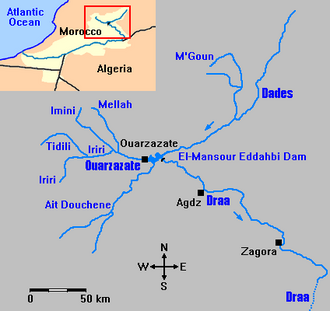 U to dijelu toka formira granicu između Alžira i Maroka, na kraju se ulijeva u Atlanski ocean kod Rta Draa. [1]