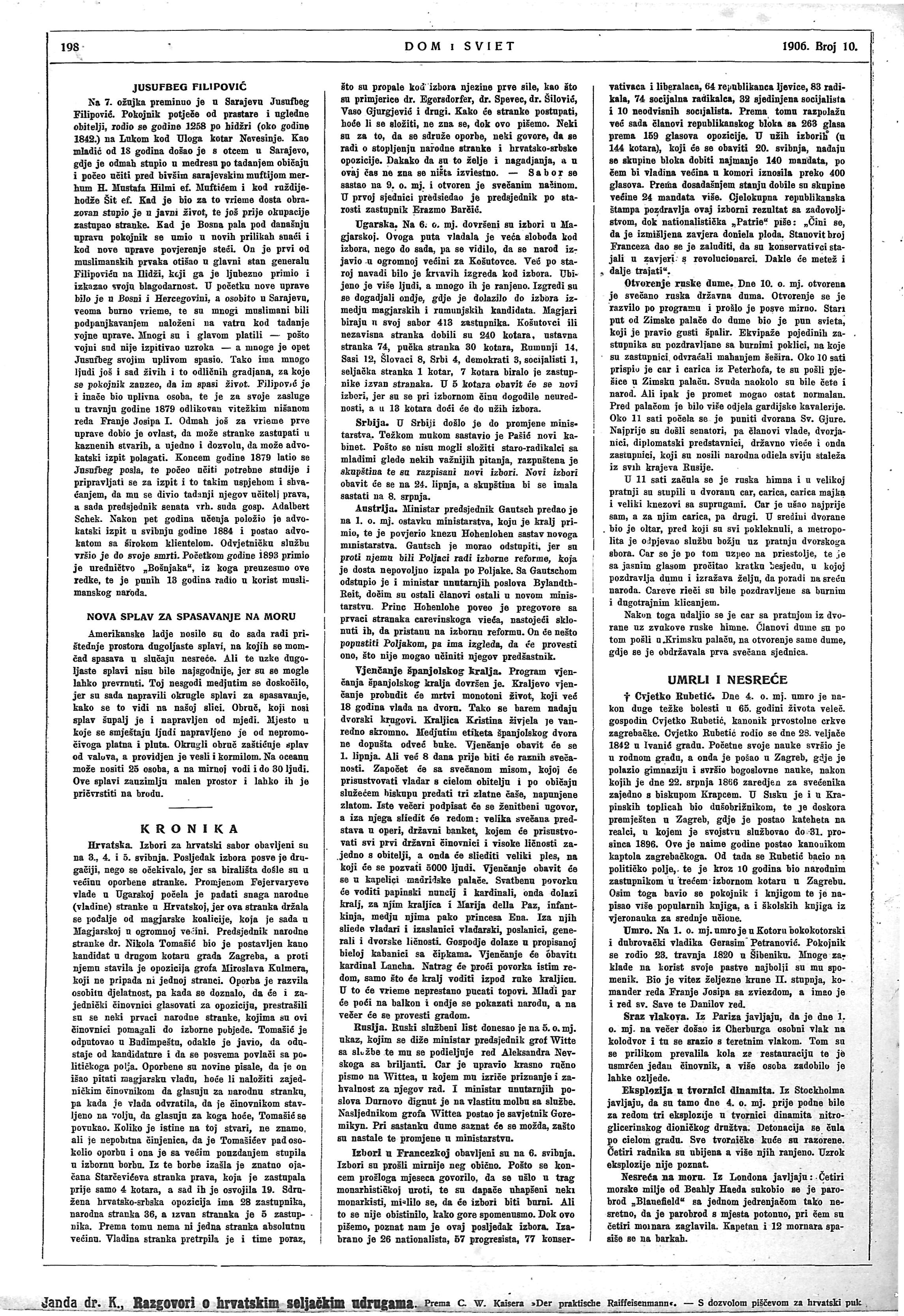 - ↑ 6,0 6,1 6,2 Dom i Sviet, 15. svibnja 1906., br. 10., 1906., str. 198.