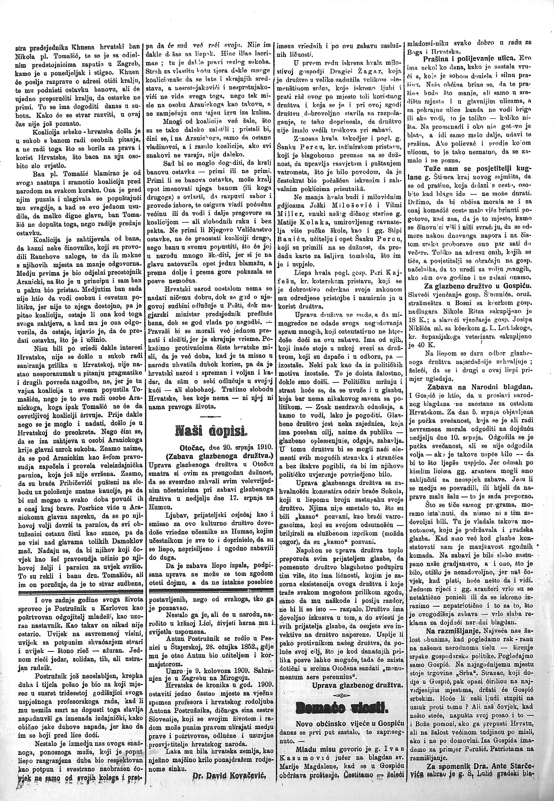 - ↑ 10,0 10,1 10,2 10,3 Hrvat (Gospić), 23. srpnja 1910.
