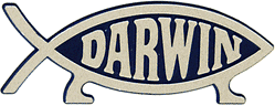 Darwinova je riba simbol ihtisa s prikačenim "evoluiranim" udovima i stopalima te riječju Darwin ispisanom unutar njega (nalik riječi ΙΧΘΥΣ ili Isus pronađenoj u nekim kršćanskim inačicama). Ona simbolizira znanstvenu teoriju evolucije, čije je temelje postavio Charles Darwin, nasuprot kreacionizmu, koji se često povezuje s kršćanstvom. Darwinova riba pokazuje stiliziranu sličnost s Ichthyostegom, koja je glavni primjer prijelaznog fosila. S Darwinovom ribom srodna je riba s udovima i riječju 'evolve' te rukom koja drži ključ.