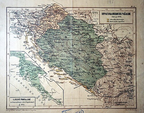 1606.žitvanski mir, stabilizacija hrvatske granice, Hrvatskoj vraćeni Čazma, Petrinja, Rovišće i Moslavina, gubi Bihać. Nakon ovog Vlasi sve intenzivnije mijenjaju stranu i prelaze novoj strani koja je pobjeđivala, kršćanskoj. Pogreška pri izradbi sličice: Hrvatsko Kraljevstvo (blijedosmeđe), Dubrovačka Republika (žuto), posjedi Mletačke Republike na hrvatskoj obali (narančasto) te Bosanski pašaluk u Osmanskom Carstvu (zeleno) 1606. godine.
