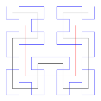 Hilbertova krivulja nastaje nakon beskonačno mnogo iteracija.