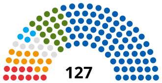 | Državne liste | Pojedinačne izborne jedinice | Hrvatska dijaspora | Ukupno (uključujući mjesta za nacionalne manjine | Promjena | ||||||||