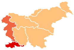Primorska graniči na jugoistoku s Notranjskom, na sjeveroistoku s Gorenjskom, na zapadu s Italijom, a na jugu s Hrvatskom.