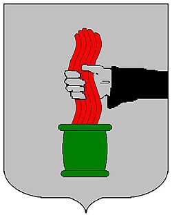 (HR) Na srebrenom polju srebrena ruka u crnom rukavu, izlazi s desna, drži crvenu vatru koja izlazi iz zelenog ćupa. [2/107] | |