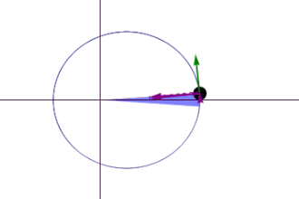 Radijvektor (provodnica) Sunce-planet opisuje u jednakim vremenskim razmacima jednake površine (plava površina). Zelena strelica prikazuje brzinu (vektor brzine). Ljubičasta strelica usmjerena prema Suncu prikazuje ubrzanje (ostale dvije ljubičaste strelice su komponente ubrzanja, jedna okomita i druga paralelna (normalna) s brzinom.