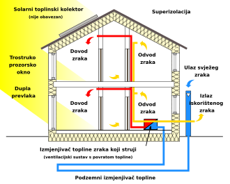 Kada vanjska temperatura nije prihvatljiva koriste se mehanički ventilacijski sustavi s povratom topline pogonjeni visokoefikasnim ECM elektromotorima. Ventilacijski sustav održava kvalitetu zraka i vraća dovoljnu količinu topline (preko 80% topline). Korištenjem takvog sustava nema potrebe za klasičnim sustavom centralnog grijanja. Pošto je kuća nepropusna za zrak, brzina izmjene zraka može biti optimizirana i precizno kontrolirana. Optimalna izmjena zraka iznosi 30-40% čitavog volumena zraka u kući po satu. Svi ventilacijski ulazi su izolirani i zabrtvljeni protiv curenja.