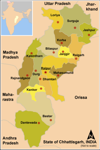 | Datoteka:Chhattisgarh in India (disputed hatched).svg Položaj Chhattisgarha u Indiji | |