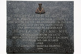 Spomen-ploča prvom rektoru Sveučilišta/Akademije Filipu Kaušiću (1618-1673.)