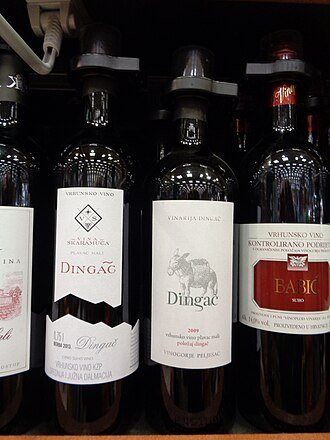 - Dingač [56] - vrhunsko vino, barrique i arhivsko vino, proizvodi Dingač poljoprivredna zadruga i vinarija, Potomje