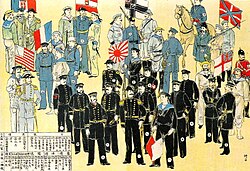 Saveznike nije povezivao nikoji sporazum ni formalni dogovor o savezništvu. Neki zapadni povjesničari definiraju prvu fazu "manje-više građanskim ratom", a koja je počela kolovoza 1900. godine,[2] premda je su još lipnja 1900. u bitkama za tvrđave Taku nagnali Qingovsku vladu poduprijeti Boksače. Uspjehom invazije, kasnije faze razvile su se u kaznenu kolonijalnu ekspediciju, koja je harala po Pekingu i sjevernoj Kini više od godinu dana. Borbe su okončale 1901. potpisivanjem Boksačkog protokola.[3]