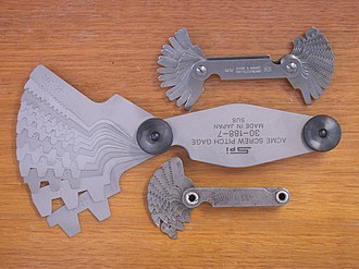 Mjerilo za kontrolu koraka navoja ima nekoliko čeličnih listića, a svaki list ima urezani profil s oznakom vrste navoja i njegovog koraka. Odgovarajući navoj je dobro izrađen kada mjerilo točno naliježe na profil navoja. [2]