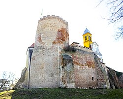 Na ruševinama kasnogotičke kapele Sv.Ladislava Kralja podignuta je barokna kapela Sv.Trojstva koja je zadržala očuvane dijelove poligonlnog gotičkog svetišta s kontraforima. Pročelna palača baroknog dvorca teško je stradala u požaru na Silvestrovo 1801. godine. Tada je izgorjela i znamenita dvorska knjižnica u kojoj je bilo i knjiga iz nekadašnje Korvinove knjižnice u Budimu, kao i čitav vlastelinski arhiv. Ubrzo obnovljena pročelna je palača tada zadobila novija klasicistička obilježja. U njenom tornju nalazi se stari mehanički sat s natpisom «Wien 1873» koji je metalnim batovima povezan sa zvonom u vrhu tornja. Na samom se zvonu nalazi ovalni pečat s natpisom na njemačkom jeziku: «Ignaz Hilzer, carski i kraljevski dvorski zvonoljevač u Bečkom Novom Mjestu 1873. godine».