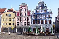U gradu postoji dvorac pomeranskih vojvoda koji je u povijesti bio njihovo sjedište. Značajan je Bismarckov toranj. U središtu grada je trg Grundwalski do kojeg vodi Aleja fontana s brojnim fontanama. Postoje zgrade koje su krajem 19. i početkom 20. st. građene u stilu art nouveau. Centar ima mnoge aleje i parkove, te ga mnogi uspoređuju s Parizom. Zanimljiv je pomorski muzej, katedrala sv. Jakova i stara gradska vijećnica. Na obali rijeke postoji posebno uređen trg Wały Chrobrego.