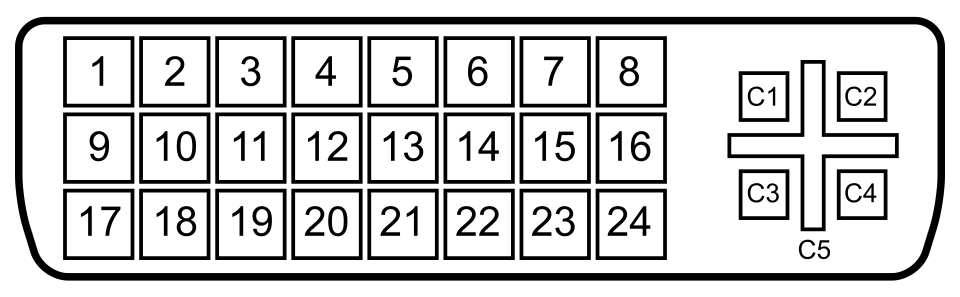 - DVI-I (Integrated Single Link) - jednostruka DVI