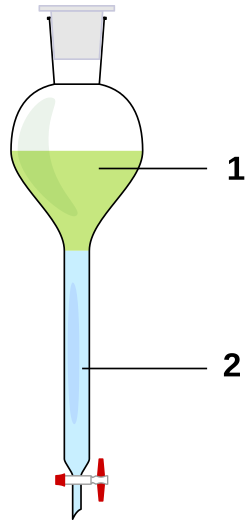 - Lijevak za odjeljivanje je kruškolik, ima čep i kratki vrat s pipcem. Može biti graduiran.