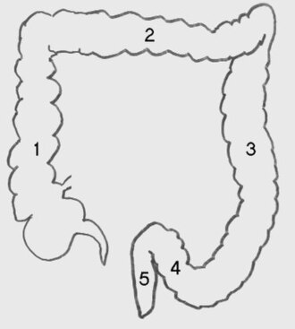 5. ravno/zadnje crijevo - nije dio kolona, ali je dio debelog crijeva (lat. intestinum crassum)