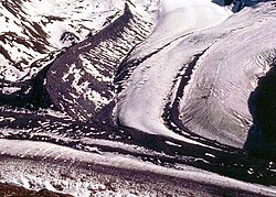 Gledajući na profil ledenjaka, brzina je najveća u gornjem središnjem dijelu ledenjaka radi najmanjeg trenja doline.