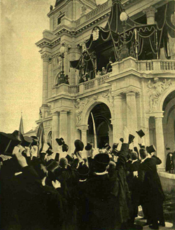 Na samo otvaranje nove zgrade Hrvatskog narodnog kazališta, 14. listopada 1895., pozvao je Franju Josipa I. Na taj dan skupina studenata i učenika održali su protumađarske prosvjede i pred carem su spalili mađarsku zastavu ispod Jelačićeva spomenika. Demonstracija je nasilno ugušena, a studenti su izbačeni iz škola. Tada je car mogao vidjeti kako je Hrvatska još daleko od smirivanja.