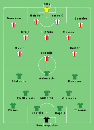 | AFC Ajax Datoteka:Flag of the Netherlands.svg | 2:0 | Datoteka:Flag of Greece (1828-1978).svg Panathinaikos FC | Wembley Stadium, London Broj gledatelja: 90.000 Sudac: Jack Taylor (Engleska) |